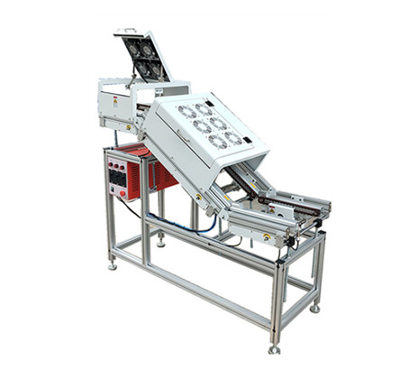 動力:上下平軌道采用15W斜面采用25W齒輪減速電機電子無級調速,可調至與波峰同步運板速度。電控:上平層平面軌道和斜面軌道采用電子調速器控制電機+手動開關控制風扇工作;下層軌道需配有smema信號和2個光電傳感器及單片機控制,斜面軌道尾部配有阻擋氣缸并由平段求板信號控制,并設有卡板報警功能。